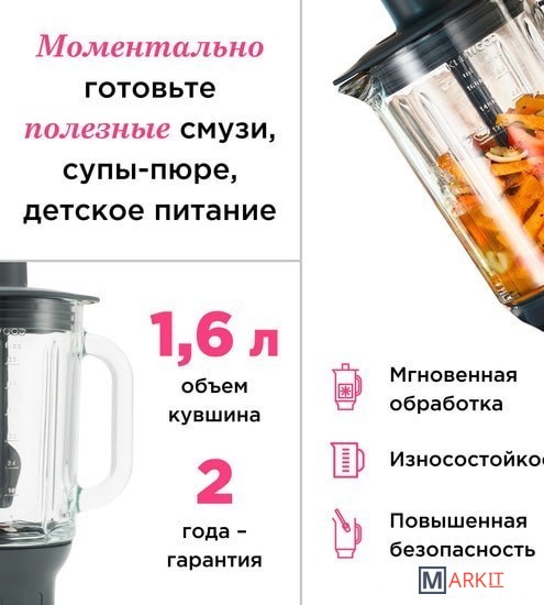 Комплектация блендер, ножи, палочка для перемешивания.